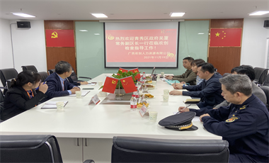 9月17日下午,青秀区常务副区长吴厦、城区人力资源和社会保障局局长吴芳钦,城区统计局局长梁文宾、区政府办公室副主任赵丽莉、 津头街道办副主任蒙福华等领导一行到公司调研并座谈。