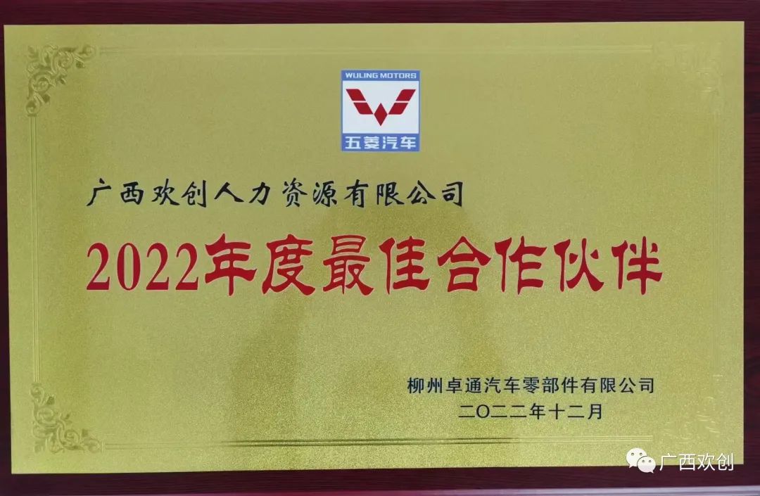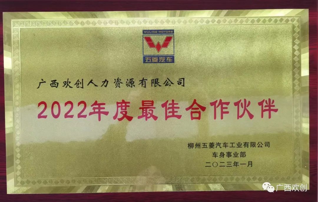 柳州五菱汽车工业有限公司近日颁发了2022年度“最佳合作单位伙伴”荣誉。广西开云网页版-开云(中国)官方 人力资源有限公司荣获两项殊荣:五菱工业底盘事业部“2022年度最佳合作伙伴”;五菱工业车身事业部“2022年度最佳合作伙伴”。