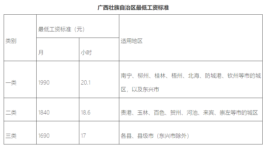 附件:广西壮族自治区最低工资标准