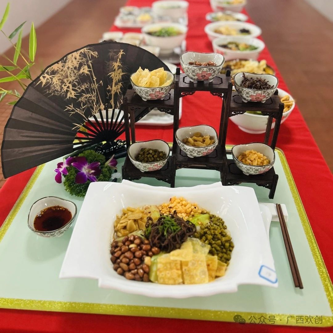 在螺蛳粉制作的赛场上,选手们认真挑选原料,细心调制汤汁,干净利落地抡起大勺在大火中的锅里挥舞,在炊烟袅袅,香气四溢的比拼中展现了精湛技艺。