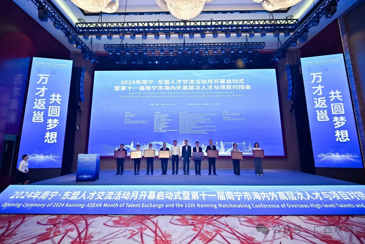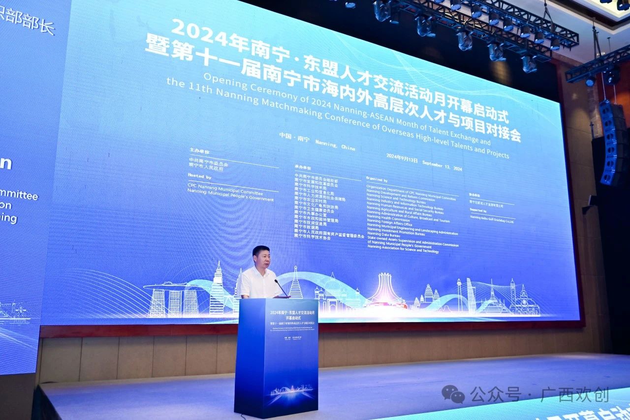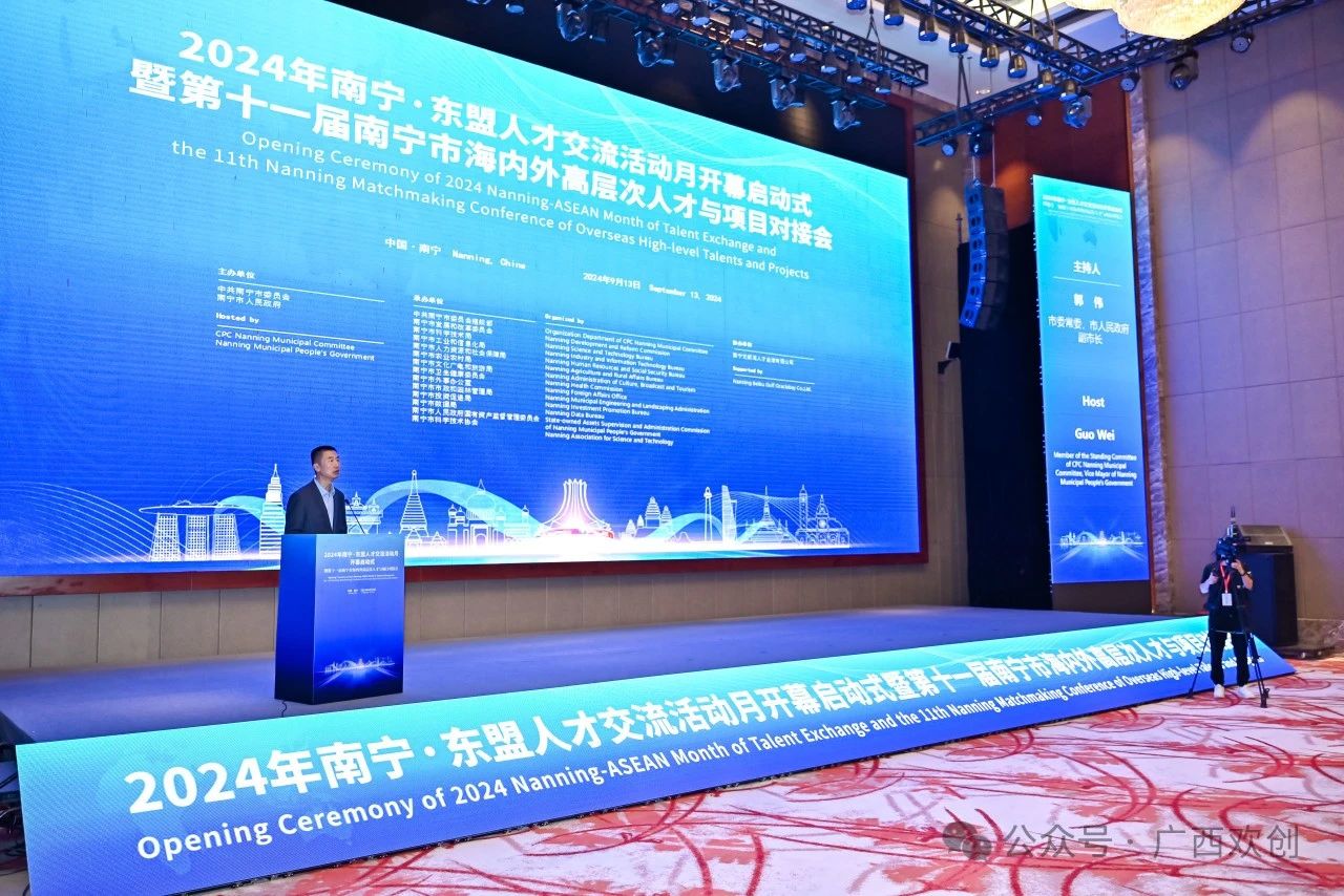 2024年9月13日,由中共南宁市委员会和南宁市人民政府举办的“2024年南宁·东盟人才交流活动月开幕启动式暨第十一届南宁市海内外高层次人才与项目对接会”在南宁市南湖名都大酒店成功举行。市委常委、组织部部长陈川出席活动并致辞,市委常委、市人民政府副市长郭伟主持会议。我司受邀参加本次活动开幕启动式。