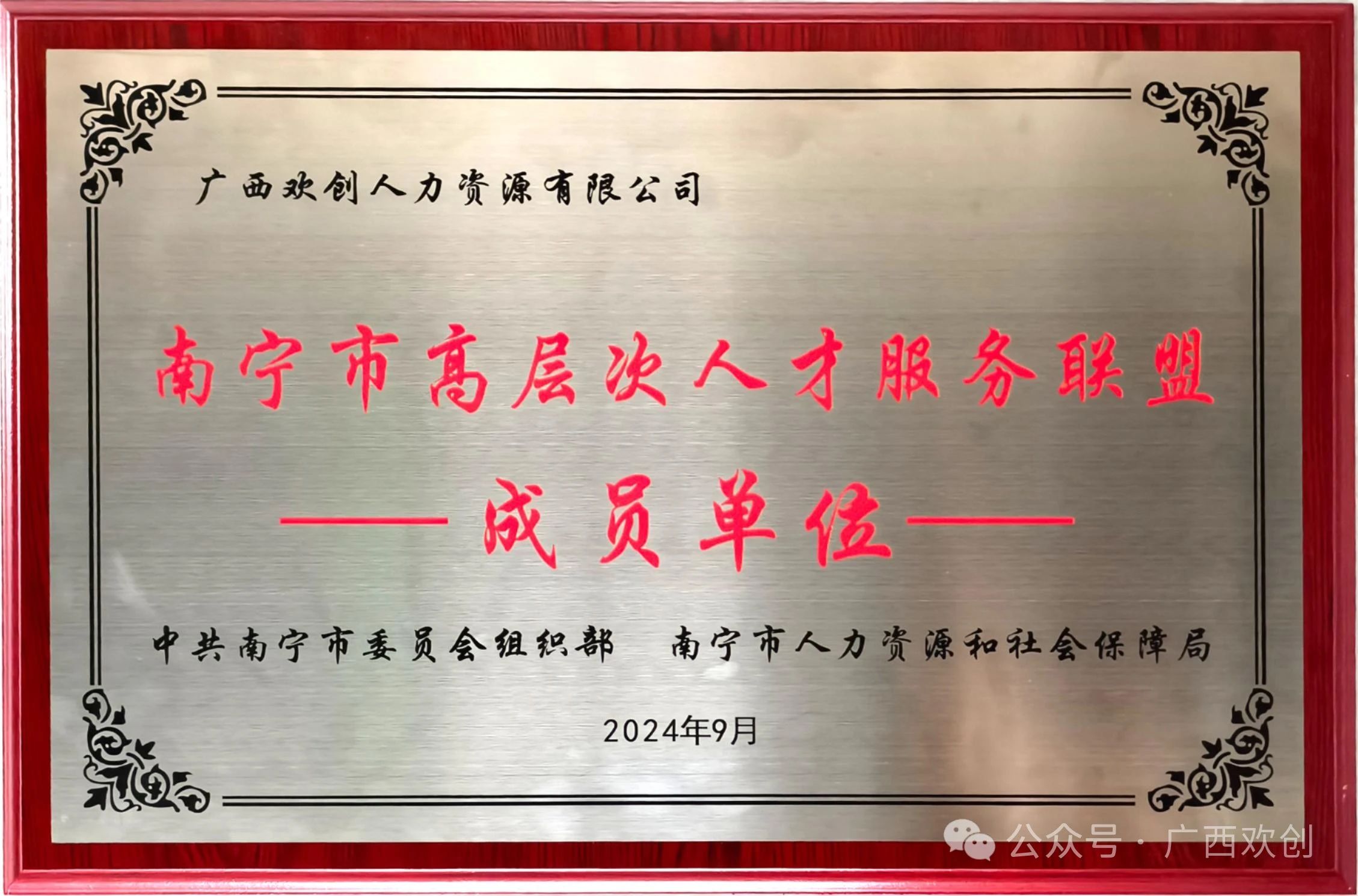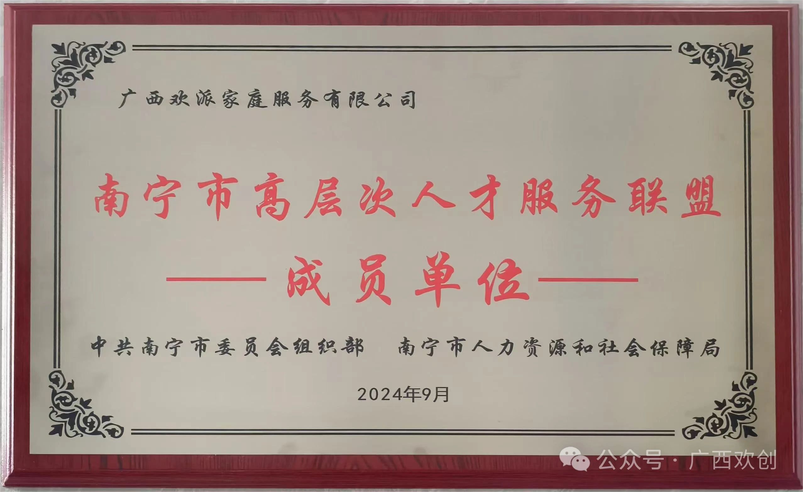 广西开云网页版-开云(中国)官方 人力资源有限公司及旗下子公司——广西欢派家庭服务有限公司都被授予“南宁市高层次人才服务联盟成员单位”,双份荣誉,双份责任。