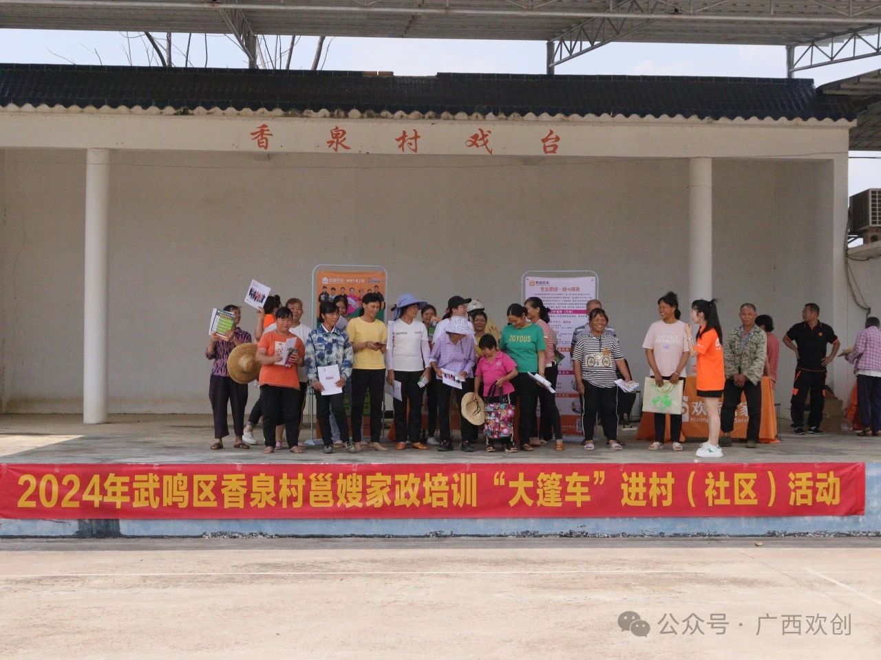 此次邕嫂家政培训“大篷车”开进武鸣区香泉村活动,为村民群众搭建了服务平台,让村民在“家门口”就能享受到免费的技能培训,引导广大村民学习技能,转变就业观念,为促进村民就业等方面提供了有力保障!