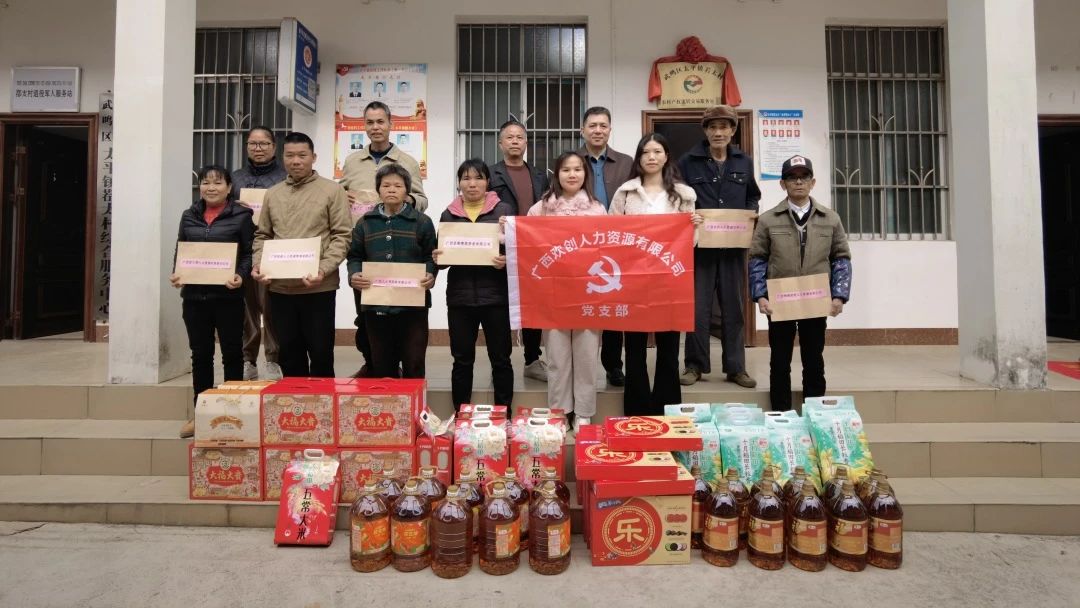 2025年1月15日,我司前往武鸣区上江地区鄀太村参加“爱心传递,携爱前行”公益慰问、“以购代捐”活动。此次爱心活动由南宁市人力资源服务行业协会联合南宁人力资源协会组织开展,共计15家人力资源企业响应参加。